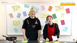 おっしーさんとここぺりーなさんによる楽しい簡単クッキング!今回のメニューは「豚ロースのネギポン酢炒め」と「キャベツとソーセージのスープ」