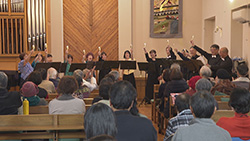 苫小牧弥生教会で行われたコンサート。「アカペラの響き」「ポピュラーの楽しみ」「混声合唱の醍醐味」と題した3部構成のステージを展開し、混声合唱のハーモニーを響かせました。