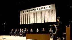 市内の各中学校の代表生徒が、日常の生活の中で感じている事や将来などについて考えている事などを発表する大会。中学生一人一人の堂々と語る思いをぜひお聞きください。