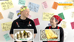おっしーさんとここぺりーなさんによる楽しい簡単クッキング!今回のメニューは「焼肉おにぎり」と「ネギとチーズのだし巻き卵」